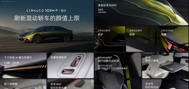 领克10EM-P的车身长宽高分别为5050×1966×1487mm,轴距达到3005mm,官方将其内部空间利用率称为“得房率”,数据为81%。座舱内部强调“四座平权”理念,前后排座椅均配备通风、加热、按摩功能,后排纯平地板、1700cm2的智能扶手以及承重15kg的小桌板,确实考虑到了全车乘客的体验。哈曼卡顿23扬声器音响、18㎡的软性材质包覆以及5.7L冷暖车载冰箱等配置,则进一步提升了舱内的精致度和实用性。